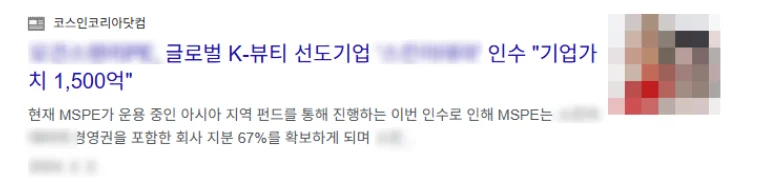 위 절차로 진행한 결과, A사의 총 가치는 약 915백만 원으로 평가되었습니다. 그리고 얼마 뒤 A사 브랜드 인수 관련 기사에는 기업 가치만 1,500억 원대 평가 되었습니다.