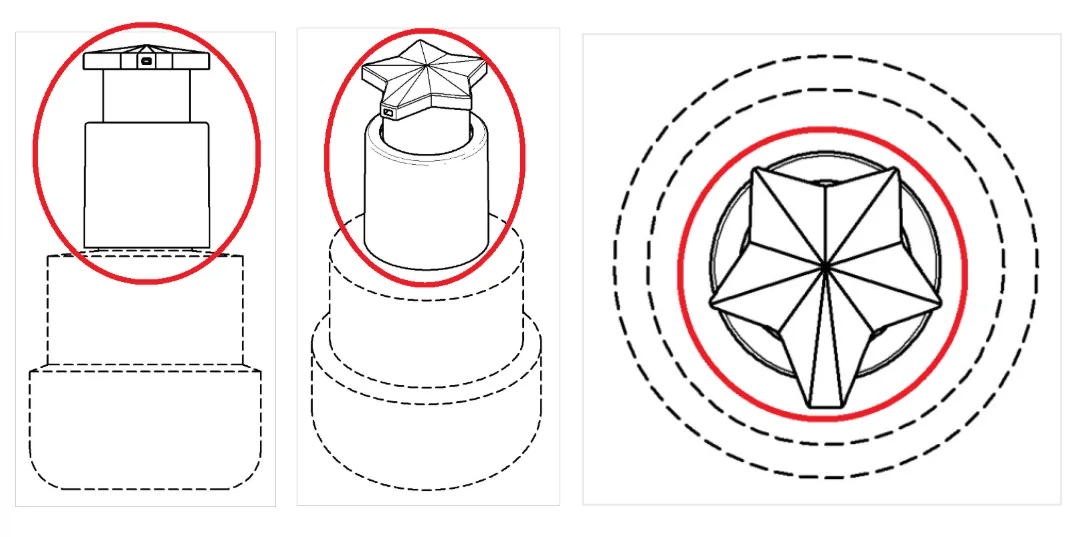 위 디자인은 엘지생활건강에서 디자인등록받은 화장품용기인데요. 적색으로 표시한 부분만 '실선'으로 표기해 권리를 주장하고, 나머지 부분은 파선으로 처리해 보호범위에서 제외한 것을 보실 수 있습니다.