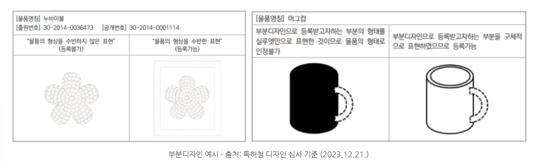 이렇게 디자인 일부에 대해서만 권리를 설정하는 것을 '부분디자인'이라고 합니다.