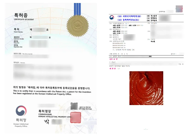 고 대표님은 약고추장을 포함해 총 4건의 레시피 특허를 등록하셨습니다.