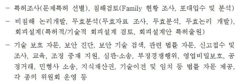 한국지식재산보호원에서 운영하는 국제 지지식재산권 분쟁 대응전략 사업의 수행기관으로 등록되어 있으며 사업신청시 사랑특허를 수행기관으로 지정할 수도 있습니다.